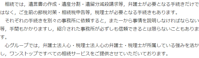 私たちは、複数の分野の問題を横断的に取扱うことで、相続のお悩みに幅広く取り組み、ワンストップで解決することができる体制を整えています。